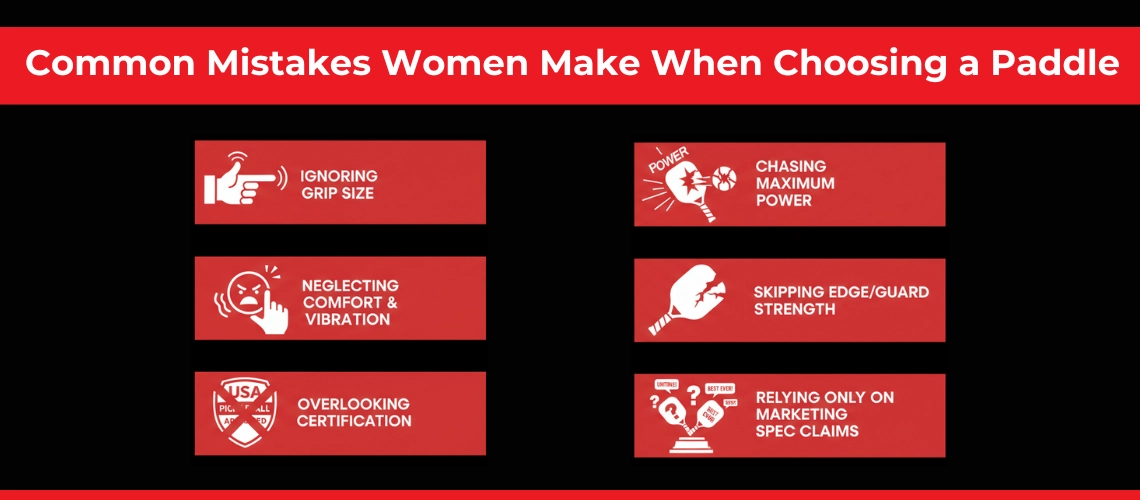 Ensure the paddle is USA Pickleball approved if you ever want to compete. Also consider surface coating, edge guards, and finish durability. While many competitors overlook long-term comfort and ergonomics, Max5 addresses these gaps with its player-designed paddle technology.