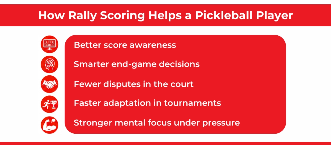 Rally scoring is very helpful to become a pro pickleball player in 2026. When you understand rally scoring, you gain: